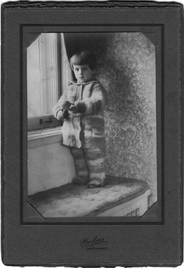 > dad, age 4, in the fur suit that his mother made for him. davenport, iowa.